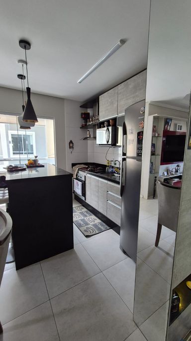 Apartamento de 2 dormitórios sendo 1 suíte, com uma ampla sala de estar, integrada com a cozinha. O imóvel possui mais 1 banheiro social, sacada com churrasqueira à carvão e 2 vagas de garagem.