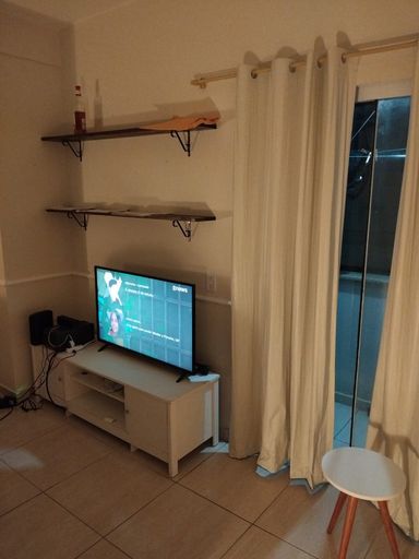 Apartamento 2 Quartos, 1 suíte (banheiro pronto completo) com roupeiro 6 portas novo sem uso, 1 banheiro social ( pronto completo), sala e cozinha ótima integrada, sofá de linho muito bom de 2 metros, lindo rack 1.50 cm para tv , prateleiras de madeira em cozinha e sala( que pode ser retirada) , geladeira, fogão, pía balcão ampla 1.50, torneira dupla opção filtro nova fixa , área de serviço com torneira e pía, pendurar roupas em sacada ou área de serviço, independente do clima; sacada com churrasqueira.