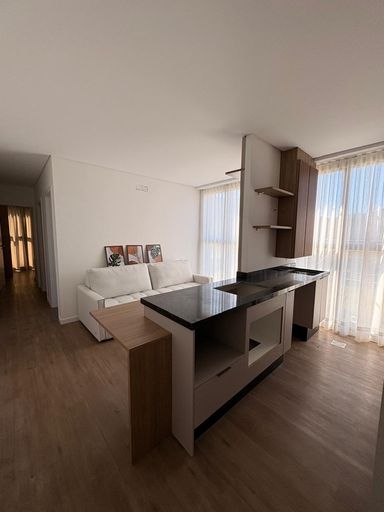 Esse apartamento já está finamente mobiliado. Possui 2 quartos. A sala e a cozinha são conjugados o que da mais amplitude e funcionalidade ao ambiente.