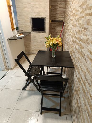Área externa coberta com churrasqueira.