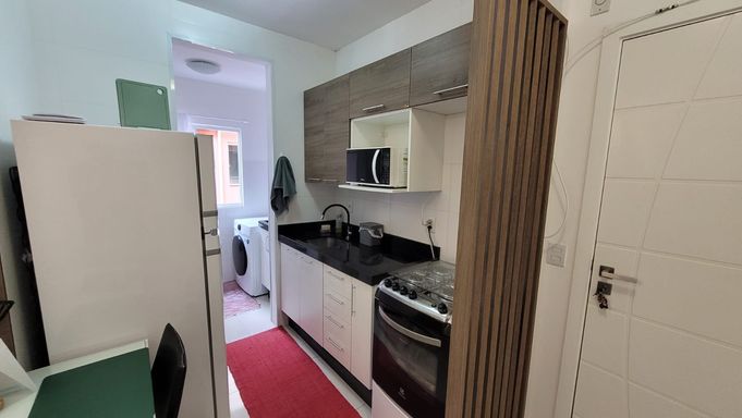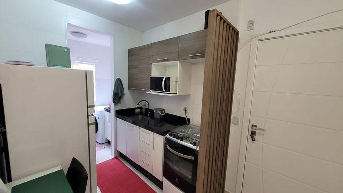 Lindo apartamento de 2 dormitórios sendo 1 suíte, banheiro social, sala e cozinha em conceito aberto, lavanderia, sacada com churrasqueira e vaga de garagem. ( ficando móveis planejados na cozinha, banheiro e quartos)