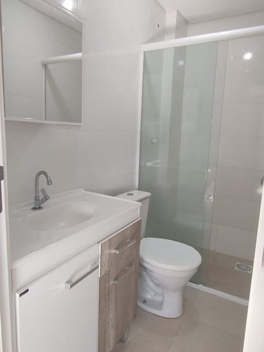Completamente Confortável. Os banheiros contam com 2 chuveiros. Sacada com churrasqueira.