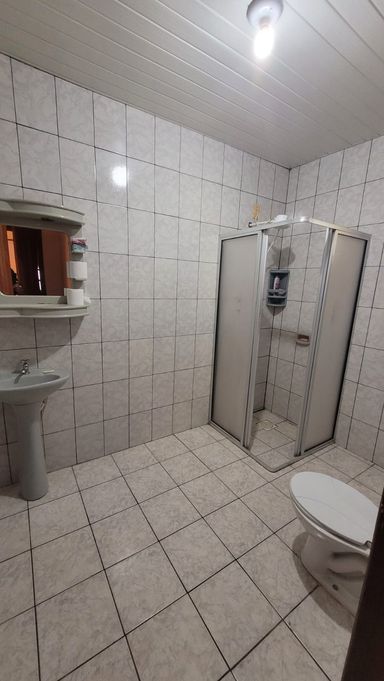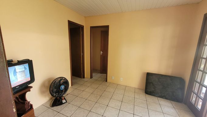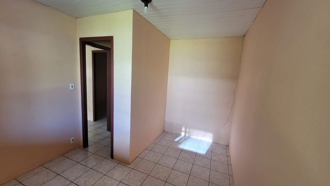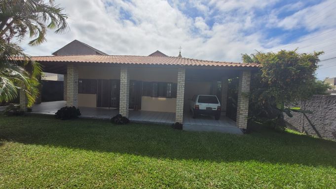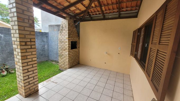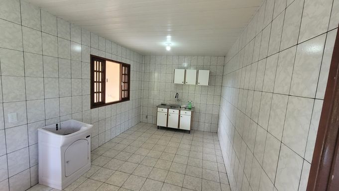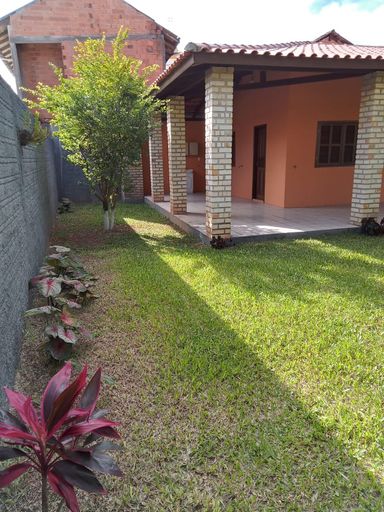 Casa térrea com 1 dormitório, sala, cozinha, banheiro social, lavanderia, churrasqueira e vaga de garagem.