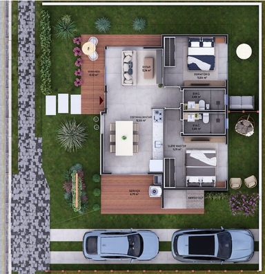 Casa Térrea 2 dormitórios sendo uma suíte, banheiro social, sala e cozinha em conceito aberto, lavanderia, 2 vagas de garagem, excelente espaço no quintal.