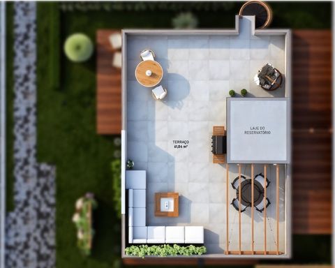 Deck da sacada da sala e da área de serviço com piso permeável