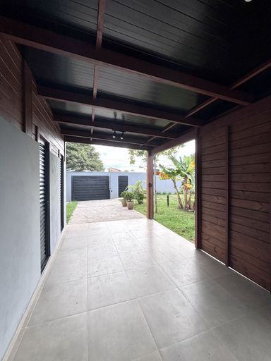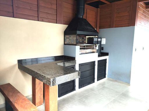 Casa de fundos com 60m2 e 2 quartos, 1 banheiro, 1 sala, 1 cozinha, 1 lavanderia e laje impermeabilizada com manta asfáltica. Área Gourmet com 45m2, construída em madeira nobre e coberta com telha sanduíche termoacústica, composta por churrasqueira elétrica de inox com bancada de granito e portas metálicas. A área possui também um depósito para ferramentas, materiais, pranchas de surf e itens diversos, além de um banheiro com chuveiro.