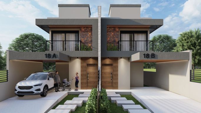 Térreo: Sala de estar, sala de jantar/cozinha, lavabo, área gourmet com churrasqueira, bom pátio, vaga de garagem