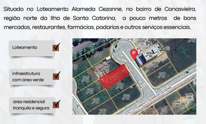 Com fácil acesso às praias da região, especialmente, Ingleses, Cachoeira do Bom Jesus e Canasvieiras, o empreendimento contempla uma área verde de quase 6 mil metros quadrados e uma completa estrutura de uso comum com as seguintes áreas de lazer: praça de eventos, pergolados, playground, pet place, deck, academia ao ar livre, horta e pomar, o loteamento fica a poucos minutos das melhores praias da região. Centro de Eventos Luiz H. da Silveira 2 km Praia de Canasvieiras 3 km Praia de Jurerê 6,5 km Praia dos Ingleses 6km Floripa Shopping 16 km Centro de Florianópolis 23 km
