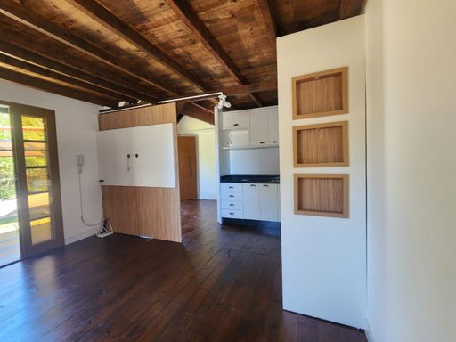 Lindo chalé com 1 dormitório, banheiro, sala e cozinha em conceito aberto, lavanderia, área gourmet com lavabo.