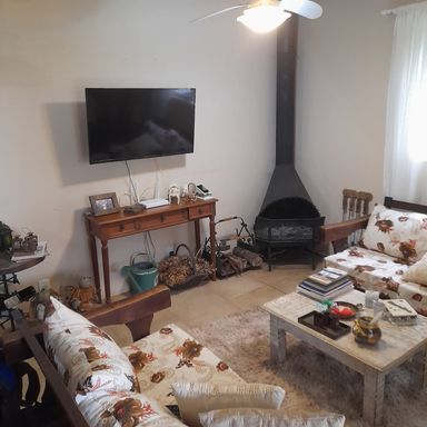 4 dormitórios espaçosos, 2 banheiros, Sala e cozinha integradas, Lareira e fogão a lenha,