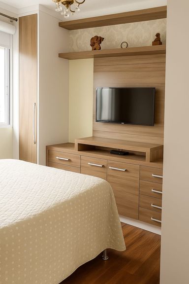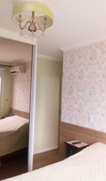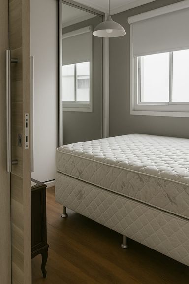 São 2 dormitórios sendo uma suíte, um segundo dormitório e banheiro social. Em ambos, armários embutidos e painéis de cabeceiras.