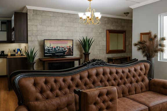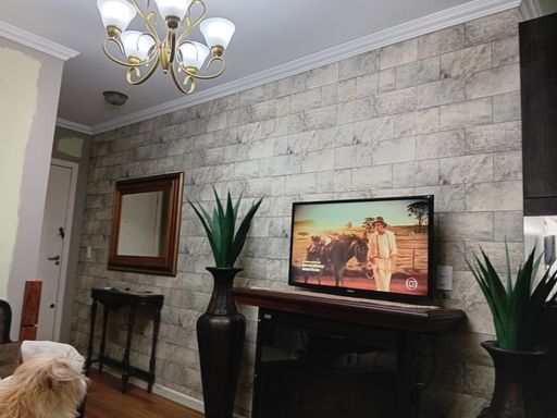 O imóvel está localizado no ático frontal do edifício; tem um living amplo com ar condicionado split e um belo painel de espelho, em um conceito aberto de ambiente integrado com a cozinha.