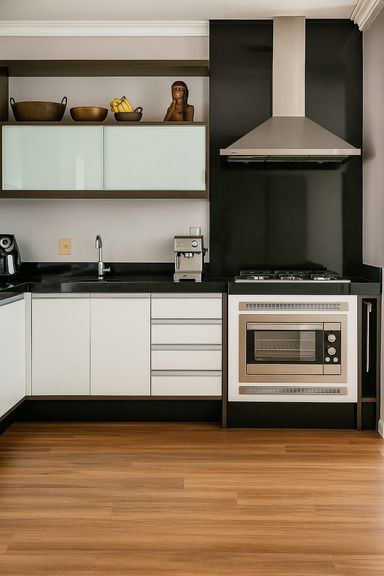 Obs.: Ficam no imóvel a cozinha montada com fogão, a coifa e o forno elétrico de embutir; ar condicionado split na suíte e na sala; os móveis fixos dos quartos e banheiros.
