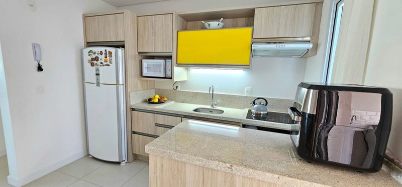 Cobertura com 2 quartos, sendo 1 suíte, sala, cozinha com móveis planejados, 1 banheiro social, lavanderia com móveis planejados e 1 vaga coberta.