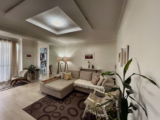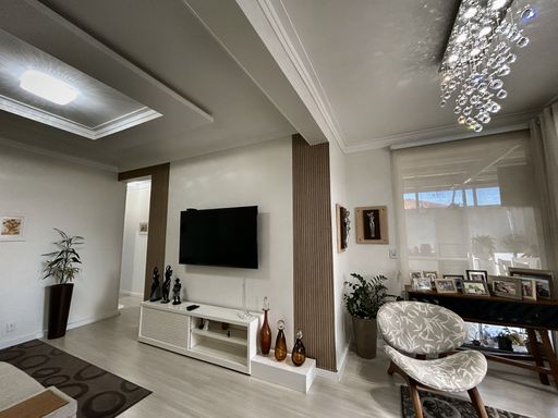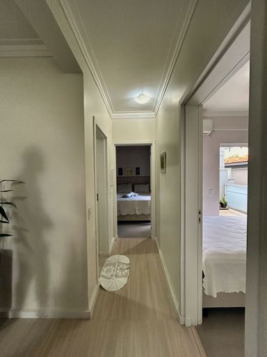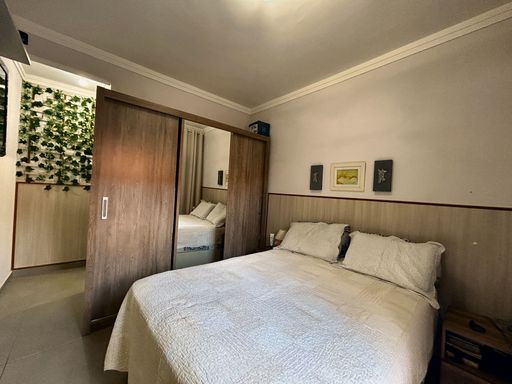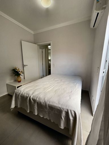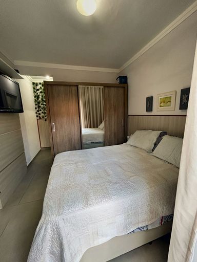 O imóvel finamente decorado tem três dormitórios com camas, armários e ar condicionado, sendo uma suíte; sala ampla, lavabo, bwc social e área de serviço; piso lamninado, iluminação indireta na sala.