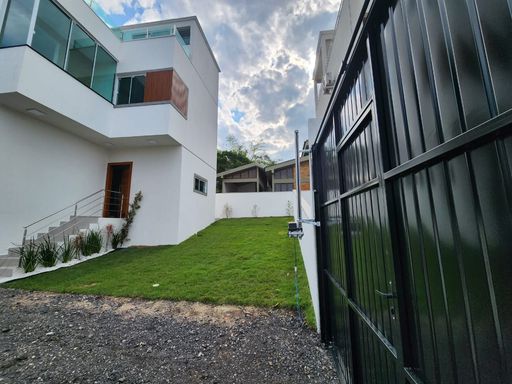 Teto rebaixado em gesso, forro externo em madeira nobre de angelim, acabamento em inox , portão com moldura de ferro e acabamento em alumínio, sistema de câmeras no condomínio e portões individuais.
