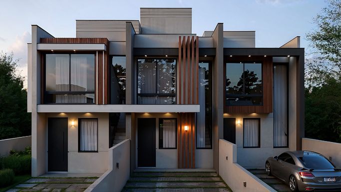 Apresentamos este elegante sobrado (Casa do meio), ideal para quem busca um imóvel moderno, com excelente distribuição de espaços e um diferencial exclusivo: terraço privativo com espera para jacuzzi.