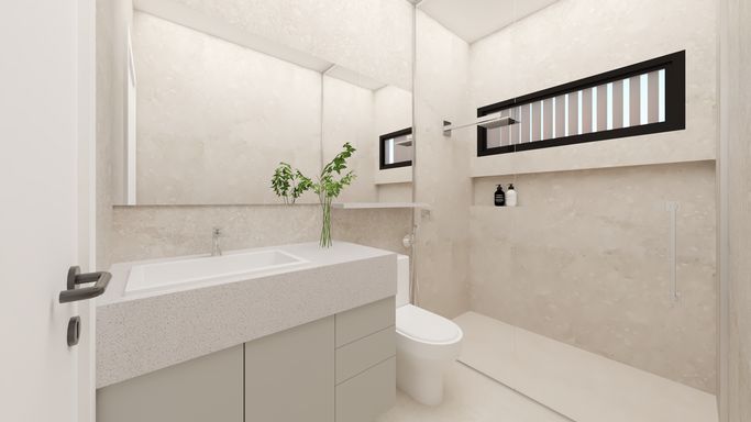 Inclui banheiros, lavabos, suítes e demi-suítes