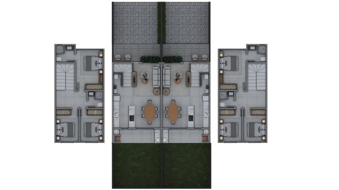 Sobrado entregue mobiliado com arquitetura moderna, 3 dormitórios, sendo 1 suíte; lavabo e banheiro social, sala de estar, cozinha e sala de jantar; churrasqueira e área de serviço.