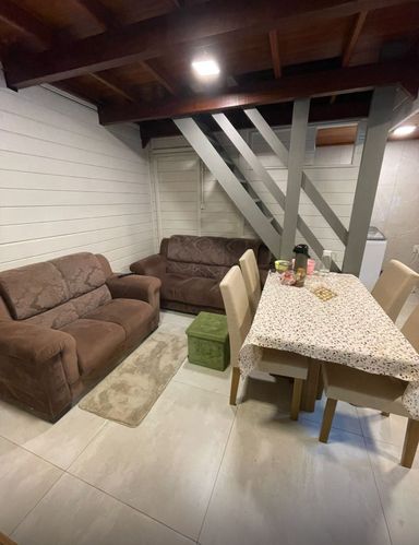 Sobrado com 3 dormitórios, banheiro social, sala e cozinha em conceito aberto, área gourmet, lavanderia, vaga de garagem.