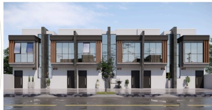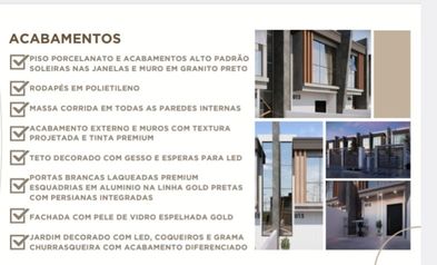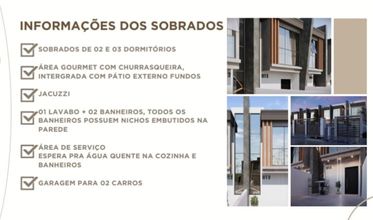 Piso térreo: sala de estar, sala de jantar/cozinha, lavabo, área gourmet, lavanderia, vaga de garagem.