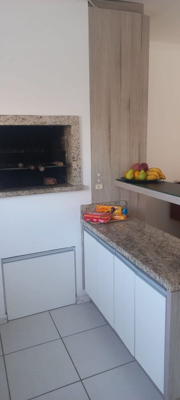 Conta com cozinha integrada com churrasqueira, ampla área de serviço e garagem coberta.