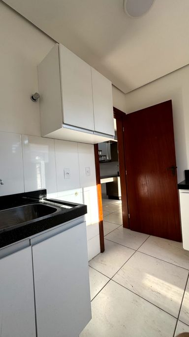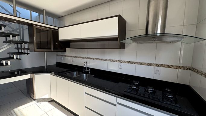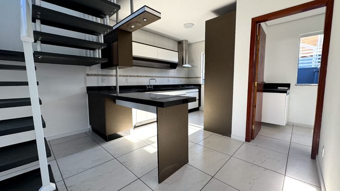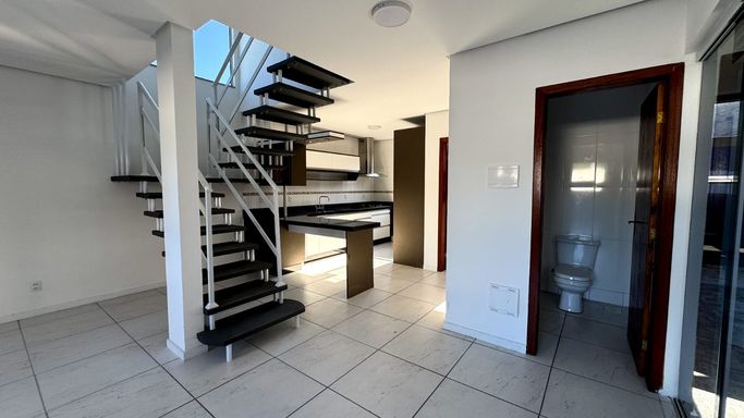 Sala e cozinha em conceito aberto, com ótimo aproveitamento dos espaços, área de churrasqueira, pátio privativo, lavabo, lavanderia e vaga de garagem coberta.