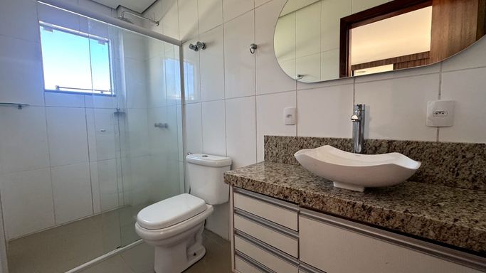 3 dormitórios amplos, sendo 1 suíte com sacada privativa e banheiro social completo.
