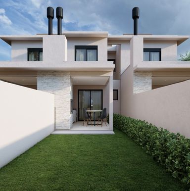 Térreo: Sala de estar, sala de jantar/cozinha, lavabo, área gourmet com churrasqueira, excelente pátio, lavanderia e vaga de garagem