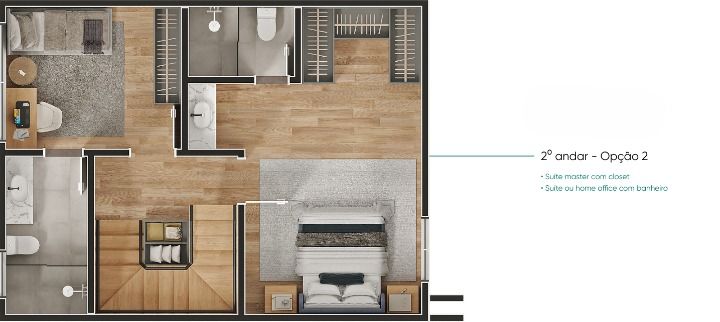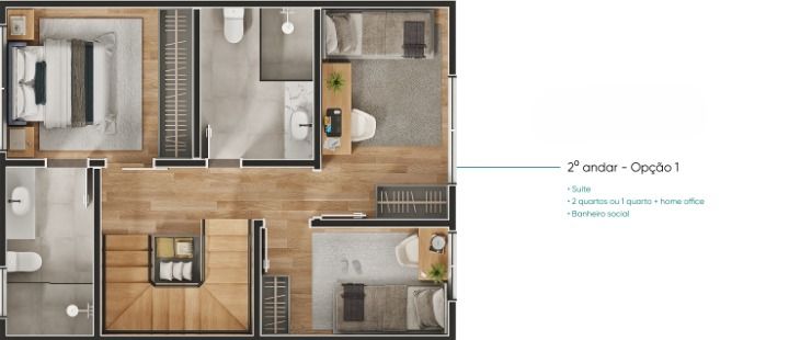 Casas com layouts abertos e funcionais. Plantas moduláveis com opções de 3 dorm. ou 02 suítes + closet ou home office.