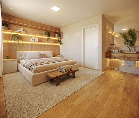 O projeto arquitetônico se integra harmoniosamente à paisagem, incorporando elementos que promovem bem-estar e conforto. Aplicando conceitos de biofilia com revestimentos naturais, iluminação adequada e ventilação eficiente em sintonia com a área de preservação circundante, cria-se a atmosfera ideal para uma vida equilibrada e em sintonia com a natureza.