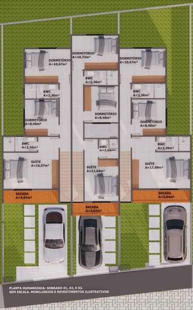 Inclui banheiros, lavabos, suítes e demi-suítes