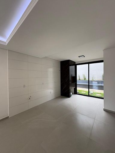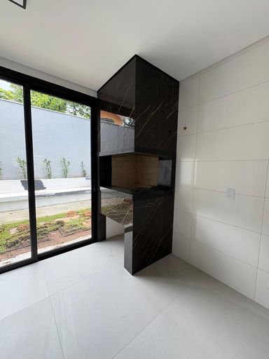 A casa conta com ambiente integrado entre sala, cozinha e área de churrasqueira, proporcionando mais amplitude e conforto para receber amigos e família.