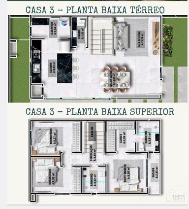 Sobrado com03 dormitórios no total sendo 01 suíte com closet e banheiro amplo com 02 chuveiros, sala e cozinha integrados, garagem descoberta - vaga para 2 carros, churrasqueira, lavabo no térreo, lavanderia espaçosa com saída para os fundos, ampla área de Jardim e layout estrategicamente pensado.