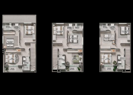 Inclui banheiros, lavabos, suítes e demi-suítes