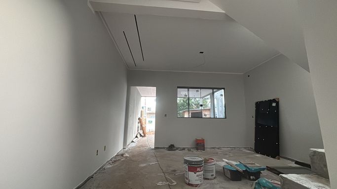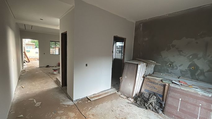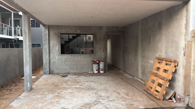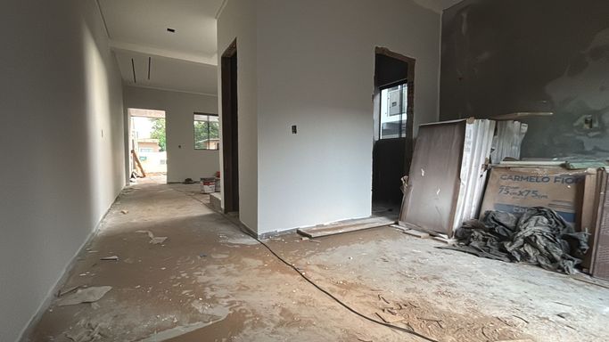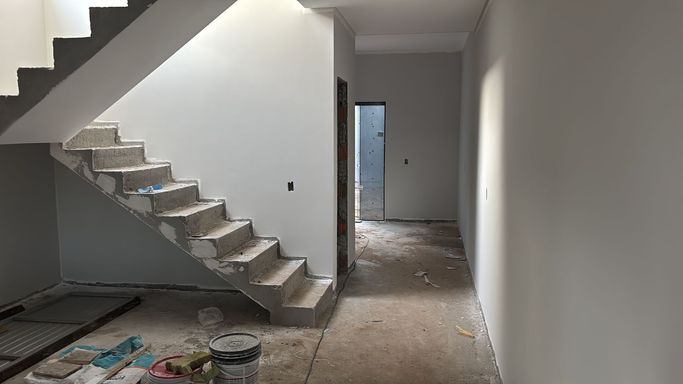 Piso térreo - sala de estar, sala de jantar/cozinha, lavabo, lavanderia, garagem.