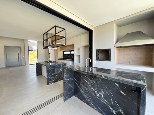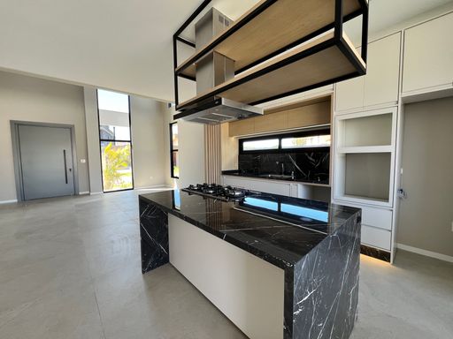 A casa é entregue com móveis sob medida na cozinha, área gourmet, todos