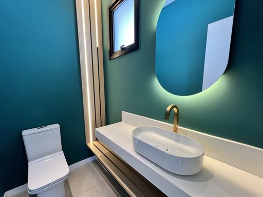 - Revestimentos: porcelanato da Portobello Shop (linha premium da