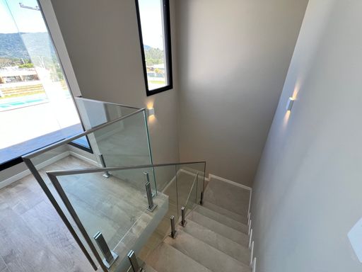 - Escada revestida com porcelanato Portobello Shop sem recortes;