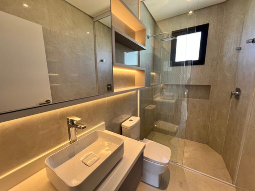chuveiro para mais comodidade, e chuveiro duplo na suíte master;